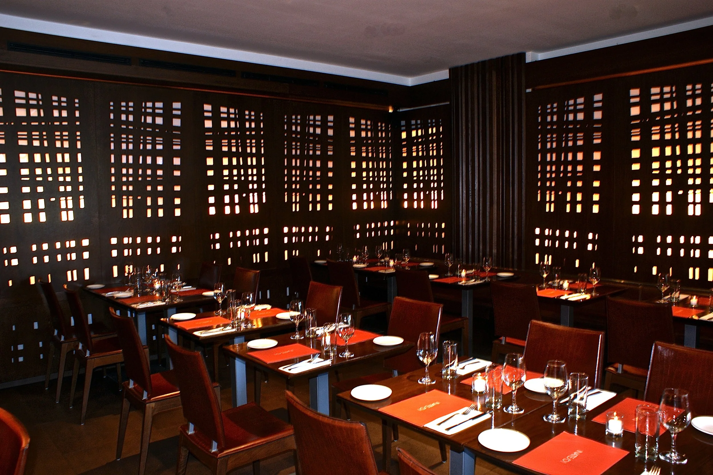 This restaurant is a masterclass in atmospheric design and precision millwork. The space features custom perforated wood panels that filter light like a modern lattice, creating a warm, intimate glow throughout the room. The interplay of shadow and geometry gives the environment a sense of rhythm and quiet drama, while rich wood tones and clean lines reflect a refined, contemporary elegance. Designed for both comfort and impact, it’s a space where craftsmanship and mood come together in perfect harmony.